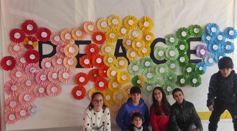 El 30 de enero es el día escolar de la no violencia y la paz, y para celebrar y hacer visible la importancia de entender la paz, la no violencia y el buen trato, durante esta semana en las horas de tutoría el alumnado ha elaborado flores de papel de todos los colores, y entre todos hemos creado nuestro símbolo de paz: un panel situado en el hall, muy colorido y hecho por todos.